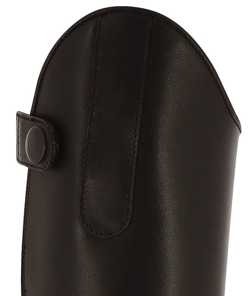 - Snap button on the leather flap at the bottom and elastic mount at the top of the shaft.