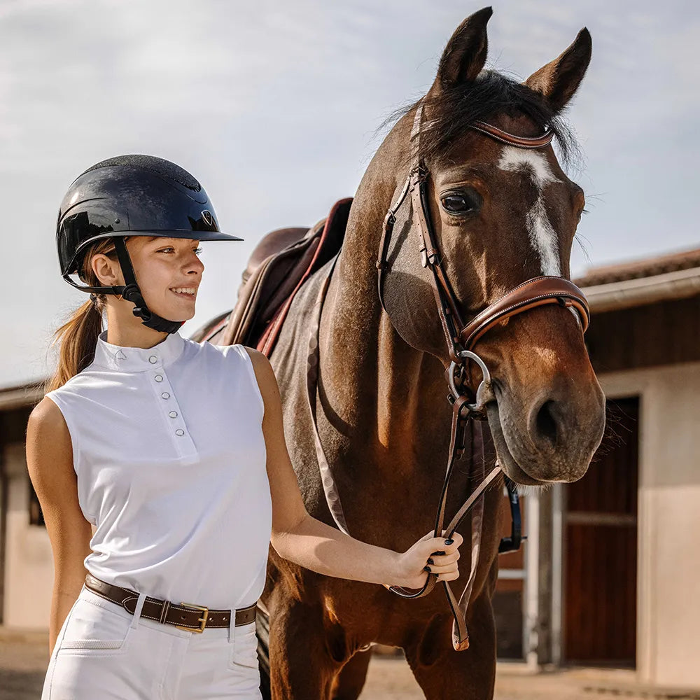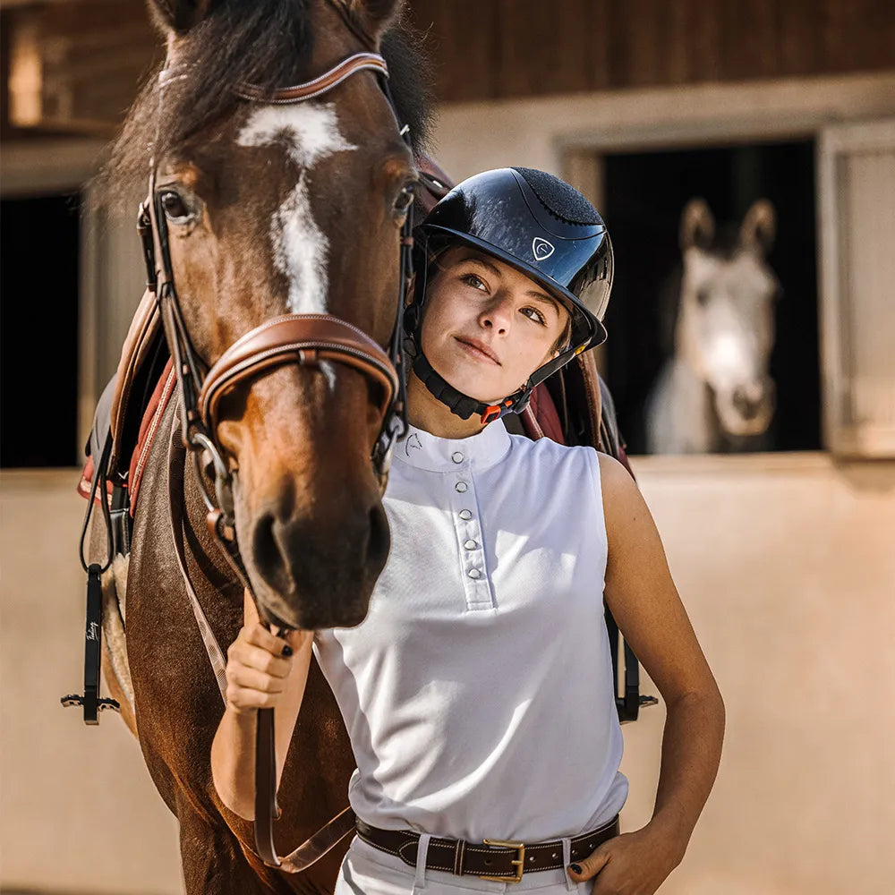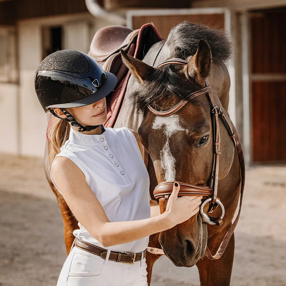 Crafted from micro polyester mesh, the Molly Polo ensures optimal airflow and comfort during competitions or training. The sleeveless cut provides freedom of movement, while the stylish details add elegance to your riding attire.