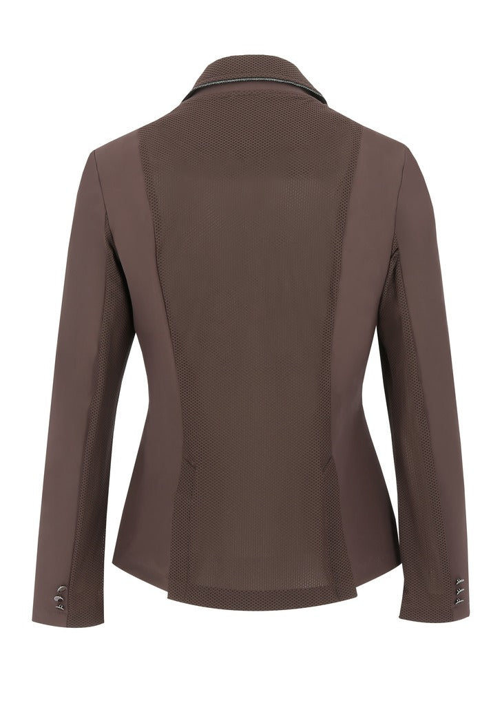 Designed for maximum comfort, the EQUITHÈME Oliva Show Jacket features breathable mesh inserts along the back and under the arms for optimal airflow.
