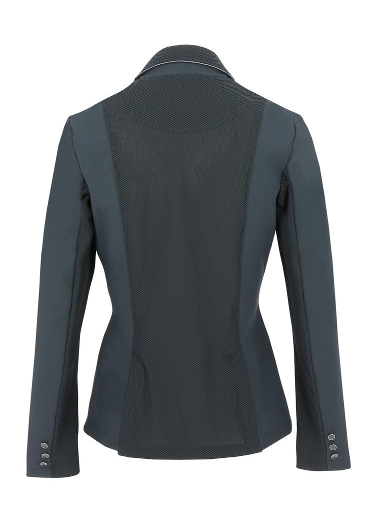 Designed for maximum comfort, the EQUITHÈME Oliva Show Jacket features breathable mesh inserts along the back and under the arms for optimal airflow.