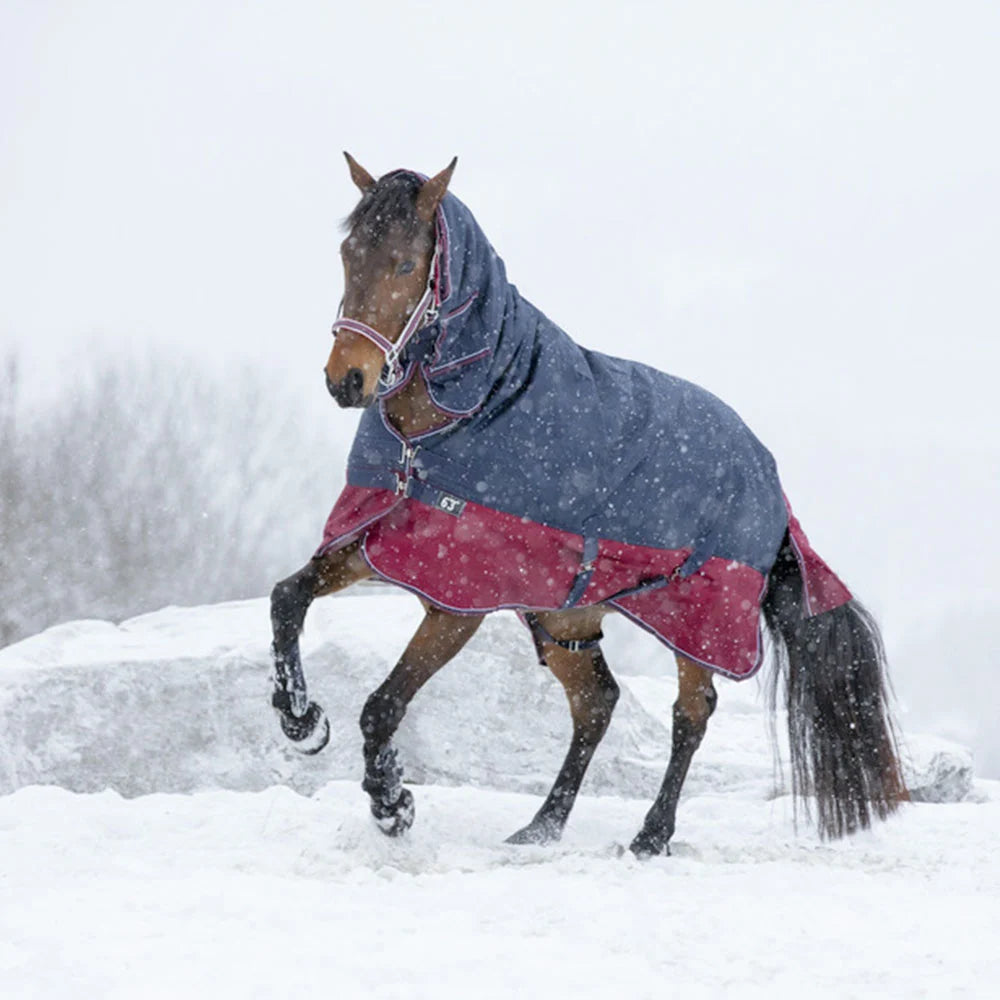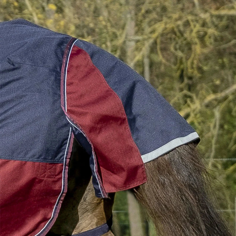 Waterproof and breathable turnout rug in 1200 Denier ripstop polyester with taped seams and nylon lining.