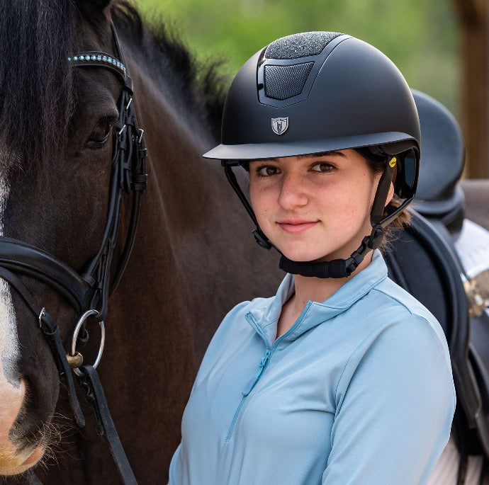 The Tipperary Devon with MIPS® is an elegant wide brim helmet appropriate for the show ring. The outer shell provides full coverage, and the interior provides an unbelievably comfortable fit that can be locked in place with the Tipperary Retention System.